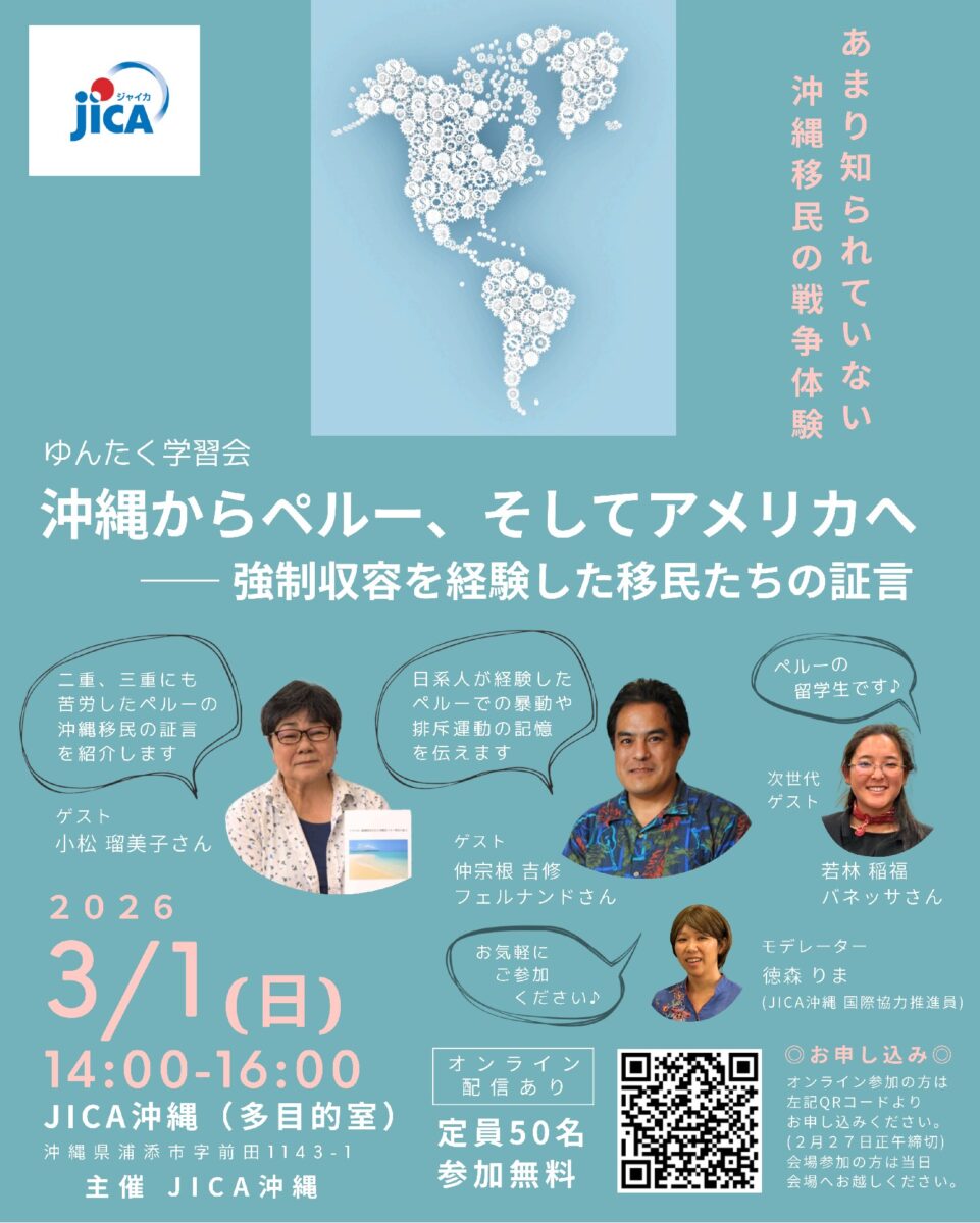 【3/1開催】ゆんたく学習会「沖縄からペルー、そしてアメリカへ ― 強制収容を経験した移民たちの証言」